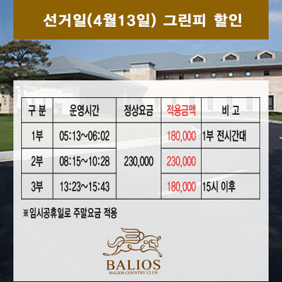 선거일(4월 13일) 그린피 할인 안내