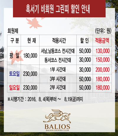 2016년 혹서기 그린피 할인안내