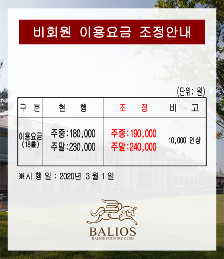 비회원 이용요금 조정안내